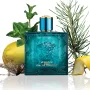 La mini fragancia Versace Eros EDT 5ml es una versión miniatura (generalmente 5ml/0.17 oz) del icónico perfume masculino, caracterizado por un aroma fresco, amaderado y oriental. Combina menta, manzana verde y limón italiano con haba tonka y vainilla, ideal para coleccionistas o viajes debido a su diseño de frasco azul compacto.
